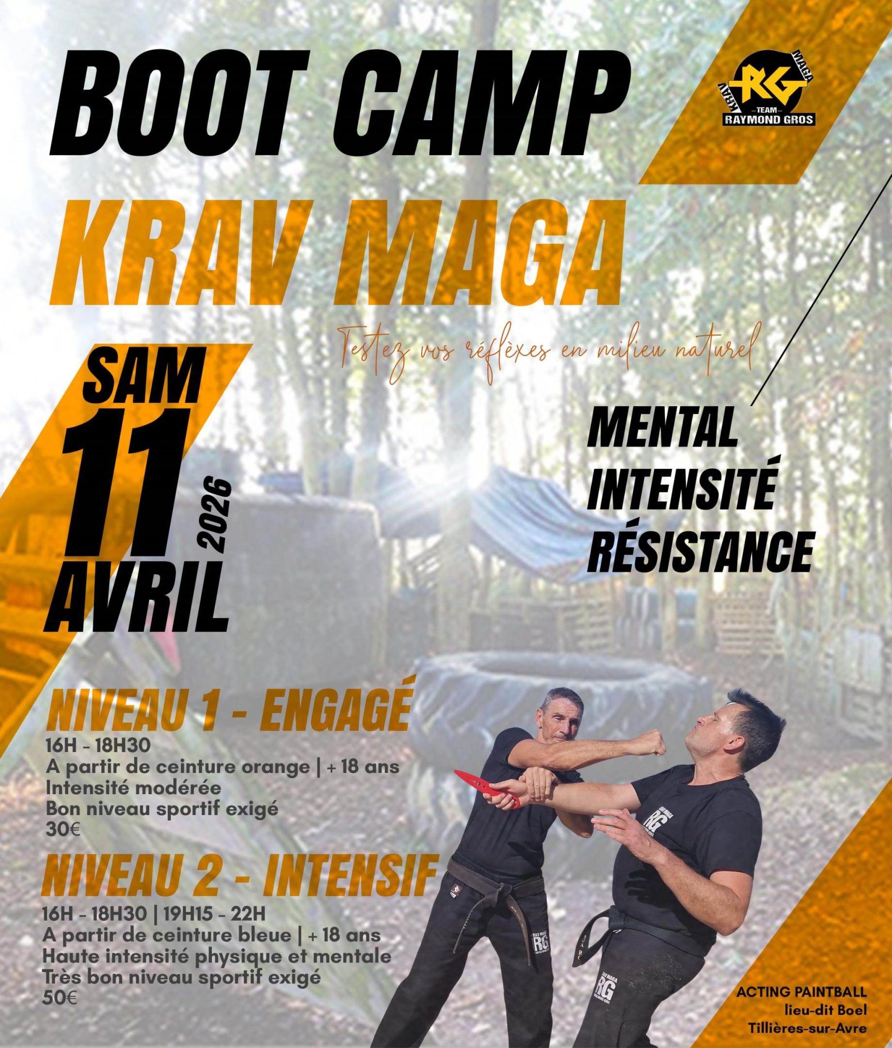 Le samedi 11 avril 2026, nous organisons un Boot Camp en milieu naturel sur le site de Acting Paintball Tillières sur Avre (entre Evreux et Verneuil).