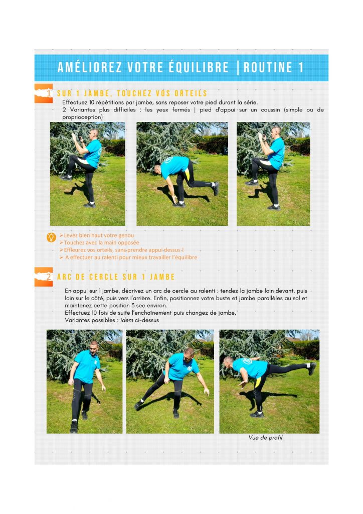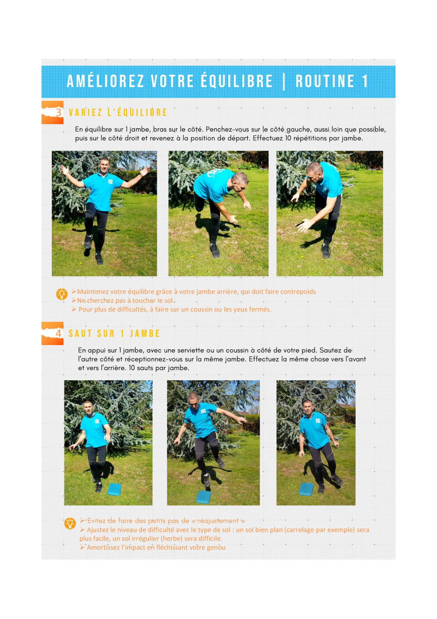 Une fois que vous avez fini vos circuits, faites une pause de 3 min avant d’enchaîner la série “équilibre”, éventuellement en faisant quelques étirements.