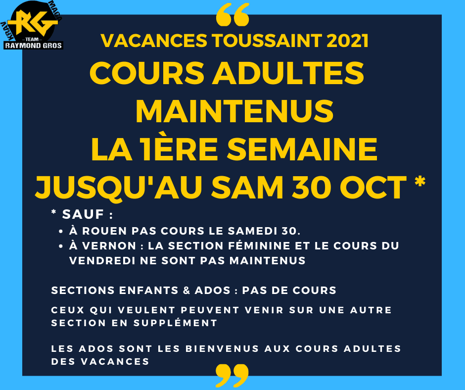 Cours adultes maintenus durant la 1ère semaine des vacances de la Toussaint !