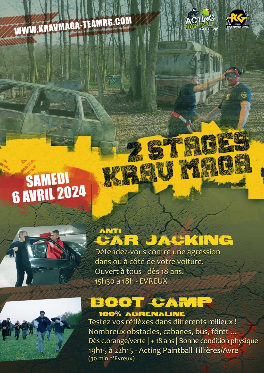 Rendez-vous samedi 6 avril 2024 pour 2 stages en extérieur : car jacking et Boot-camp !