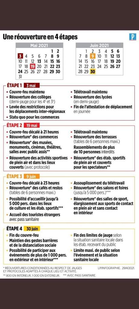 Concrètement, les sports collectifs ou de contact restent interdits jusqu’au 9 juin. Passé cette date, la pratique sportive sera élargie aux sports de contact en plein air, et aux sports sans contact en intérieur. Les salles de sport pourront rouvrir, ainsi que les gymnases, piscines et autres établissements sportifs en intérieur.