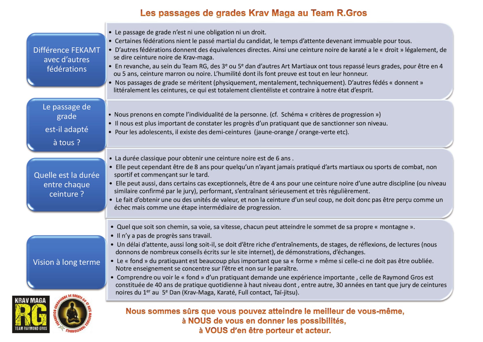 Nous invitons chaque pratiquant à lire attentivement notre article au sujet des critères que nous utilisons, au Krav Maga Team RG, pour évaluer les ceintures.